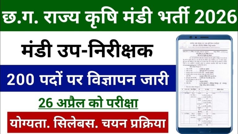 नमस्कार दोस्तों आज के इस लेख में हम आपके साथ CG Mandi Board Sub Inspector Recruitment 2026, CG मंडी बोर्ड …